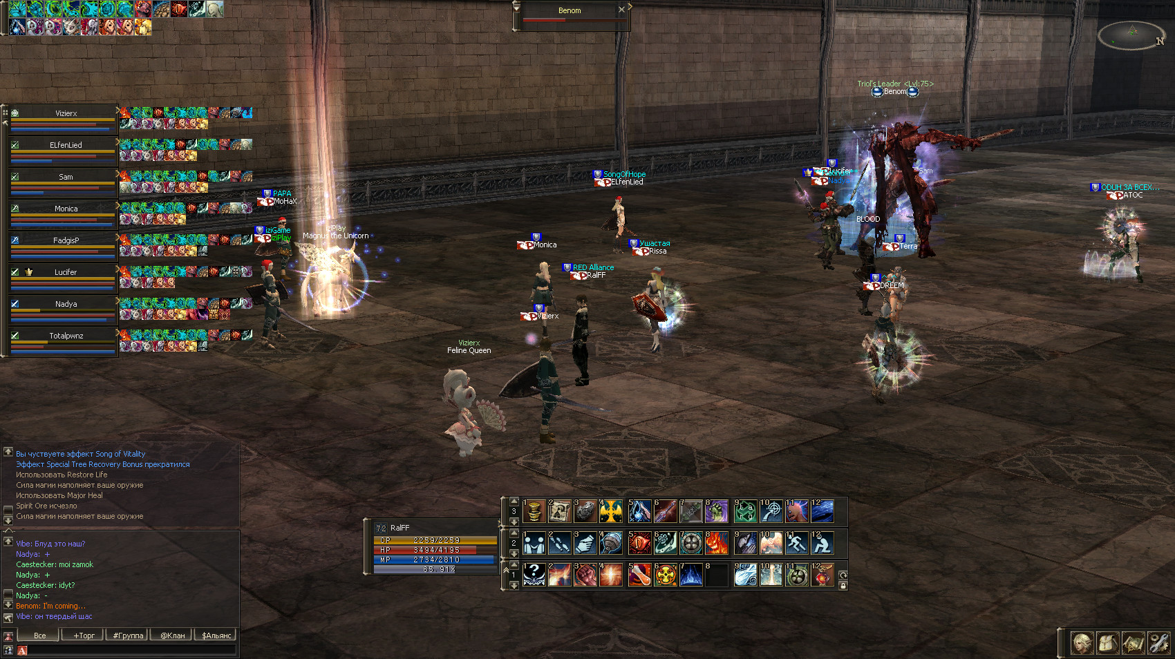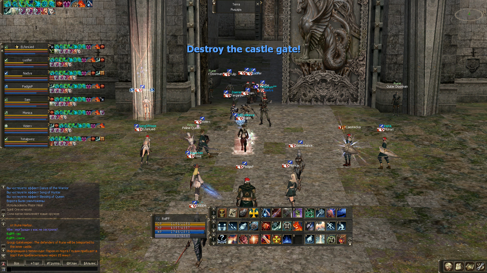 Помню были приглашенные Костей с другого сервера. Сам он был на Тотале, позже зашел еще Кастекером, подменив кого-то. Точно не уверен был ли на коте Руслан или кто-то из приглашенных, поэтому и указывал именно ник чара, а не человека.