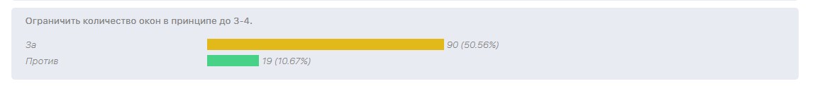 Почистил голосовалку. Кто-то ооочень старался накрутить ограничения до 3-4 окон. Автоматом срезалось с 86% до 50% ))))